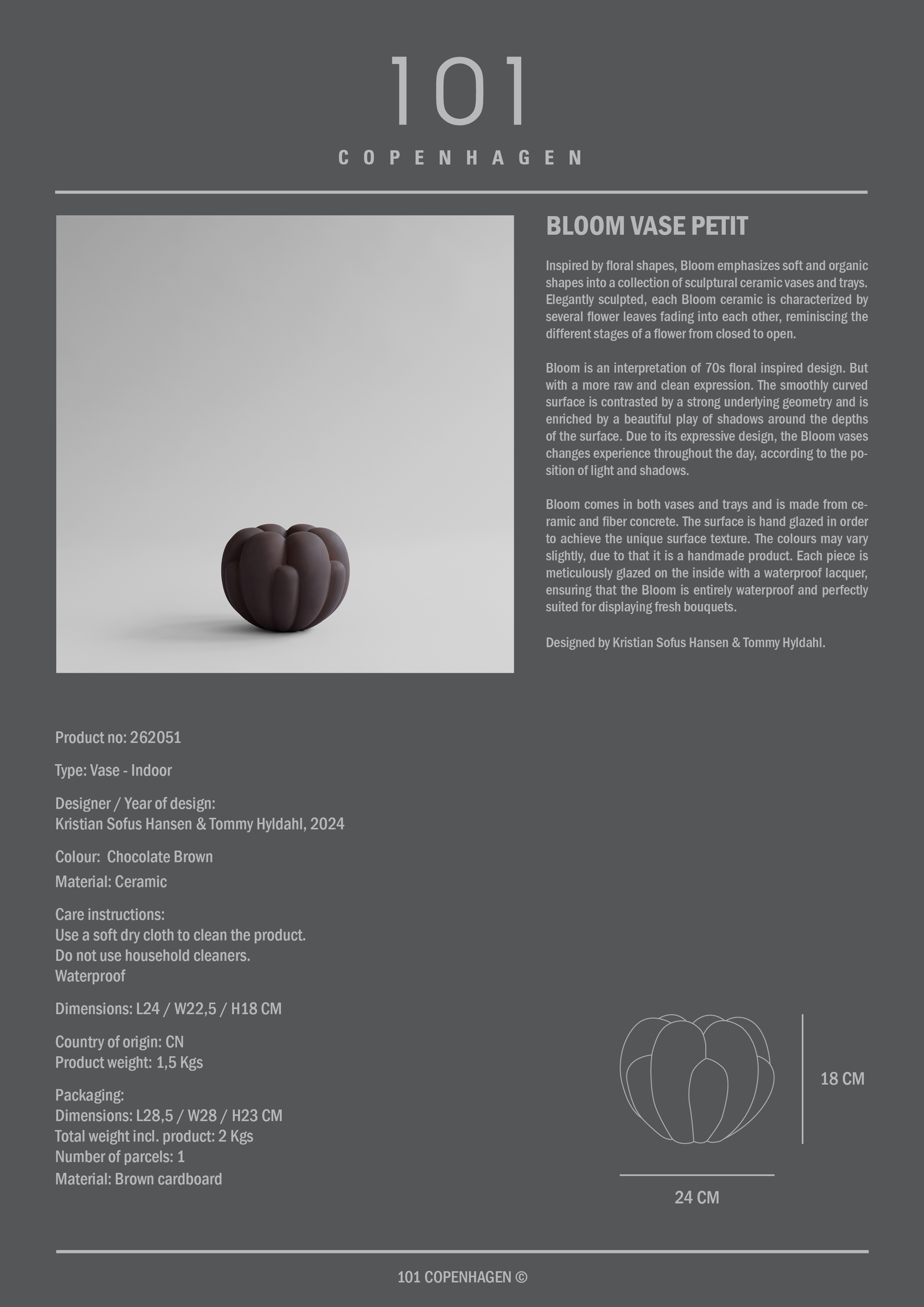101 Copenhagen Bloom Vase Petit Chocolate Brown
