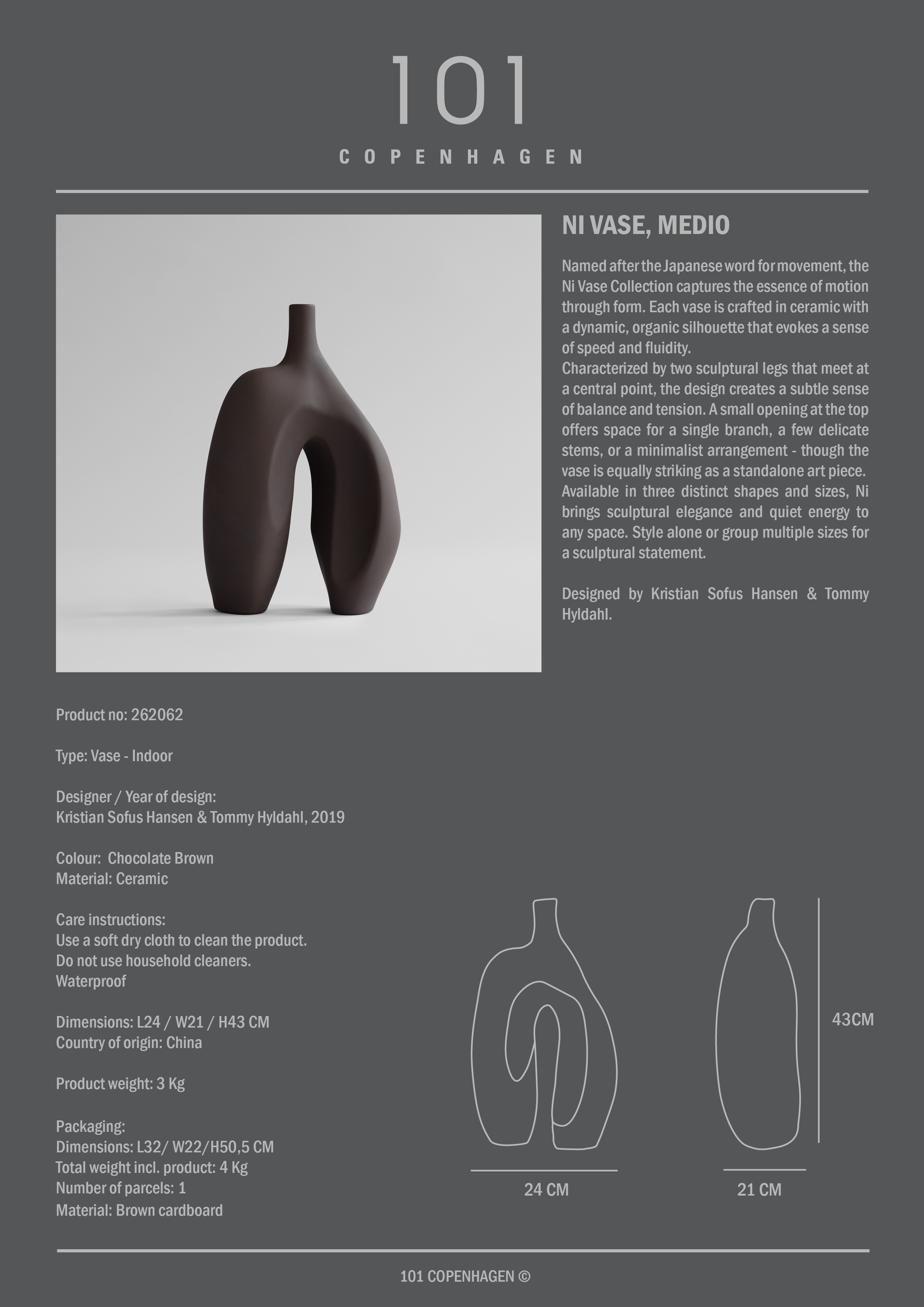101 Copenhagen Ni Vase Medium Marrone Cioccolato