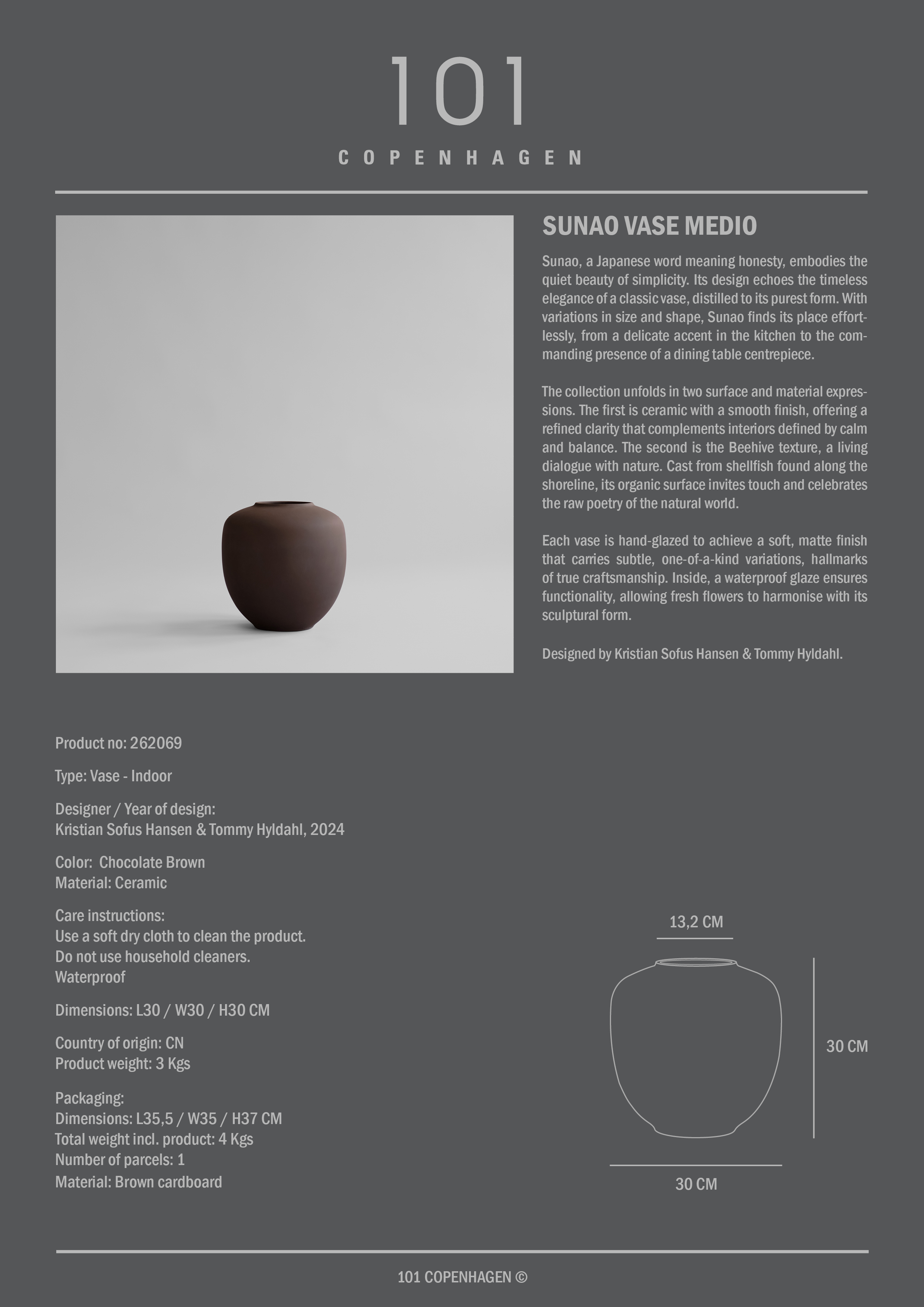 101 Copenhagen Sunao Vase Medium Chocolate Brown