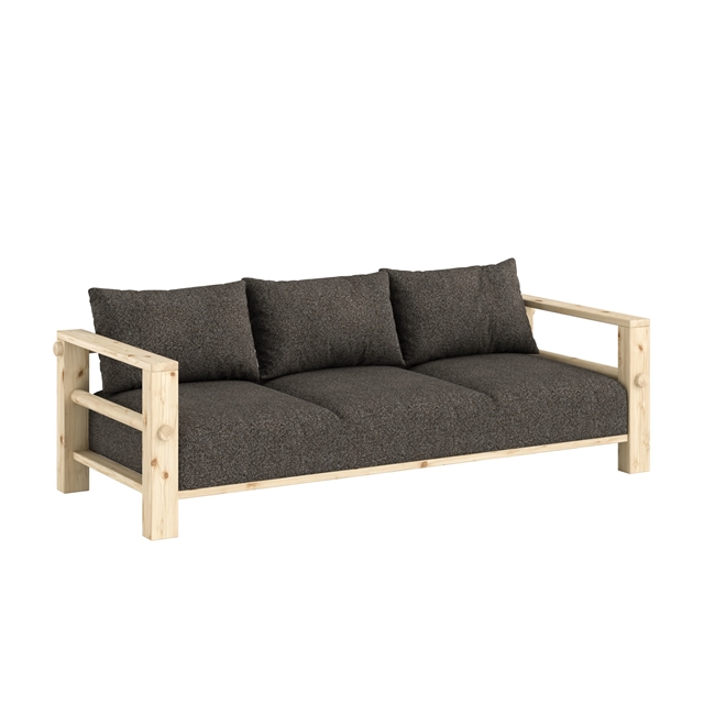 Il divano Bare di Karup si distingue per un'espressione calma e minimalista: il profilo basso e le linee pulite creano un'atmosfera rilassante, la solida struttura in legno sostiene un comodo materasso che invita al relax e a un utilizzo informale, mentre il design leggero lo rende facile da collocare in diversi ambienti, fungendo sia da divano classico che da versatile soluzione lounge.