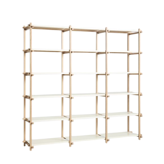 HAY Woody è una serie di mensole versatile e minimalista che unisce funzionalità e un look grezzo e industriale. Ispirata alle classiche mensole da costruzione, Woody presenta una struttura aperta e leggera, dove la struttura a vista in legno massello e i ripiani in robusto acciaio creano un equilibrio tra materiali naturali e design moderno. La mensola è disponibile in diverse dimensioni e combinazioni di colori, rendendola ideale sia per abitazioni private che per ambienti professionali. Grazie al suo design flessibile, Woody può essere utilizzata come soluzione di contenimento in soggiorno, ufficio o cucina e, per una maggiore funzionalità, è possibile acquistare accessori che rendono la mensola ancora più pratica.