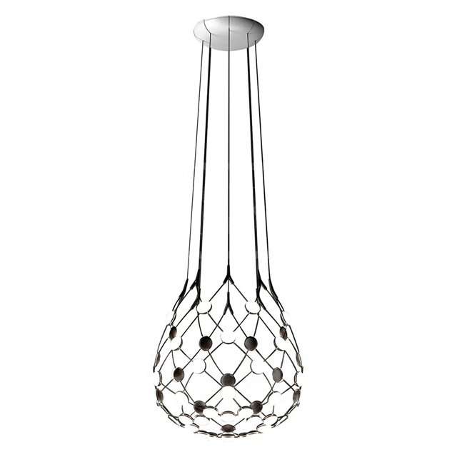 La Lampadario Luceplan Mesh di Luceplan presenta una splendida struttura trasparente, composta da una rete di cavi flessibili con sorgenti luminose a LED a ogni intersezione.
