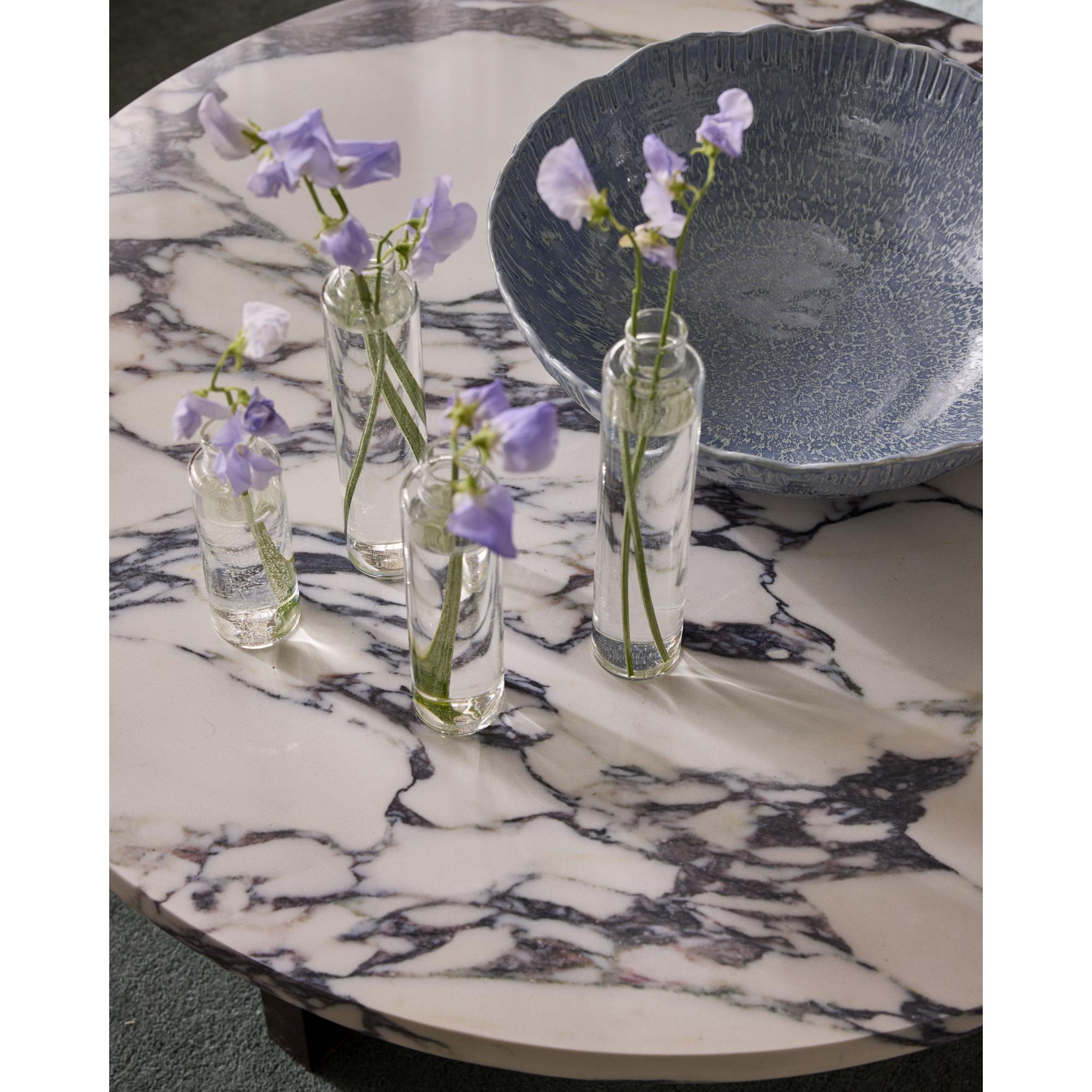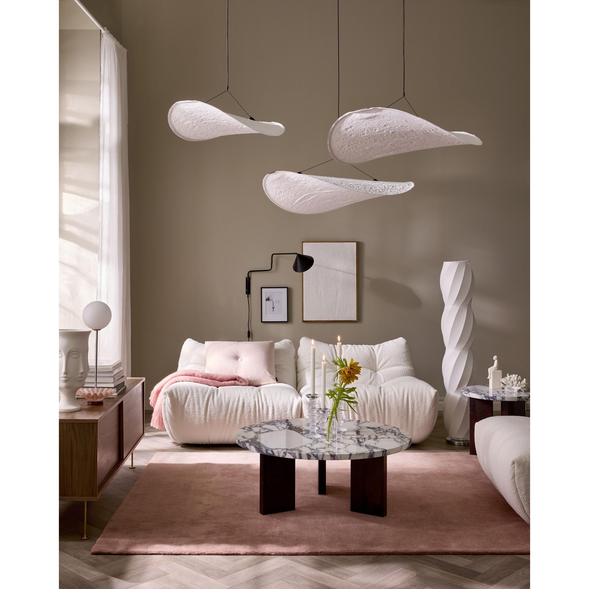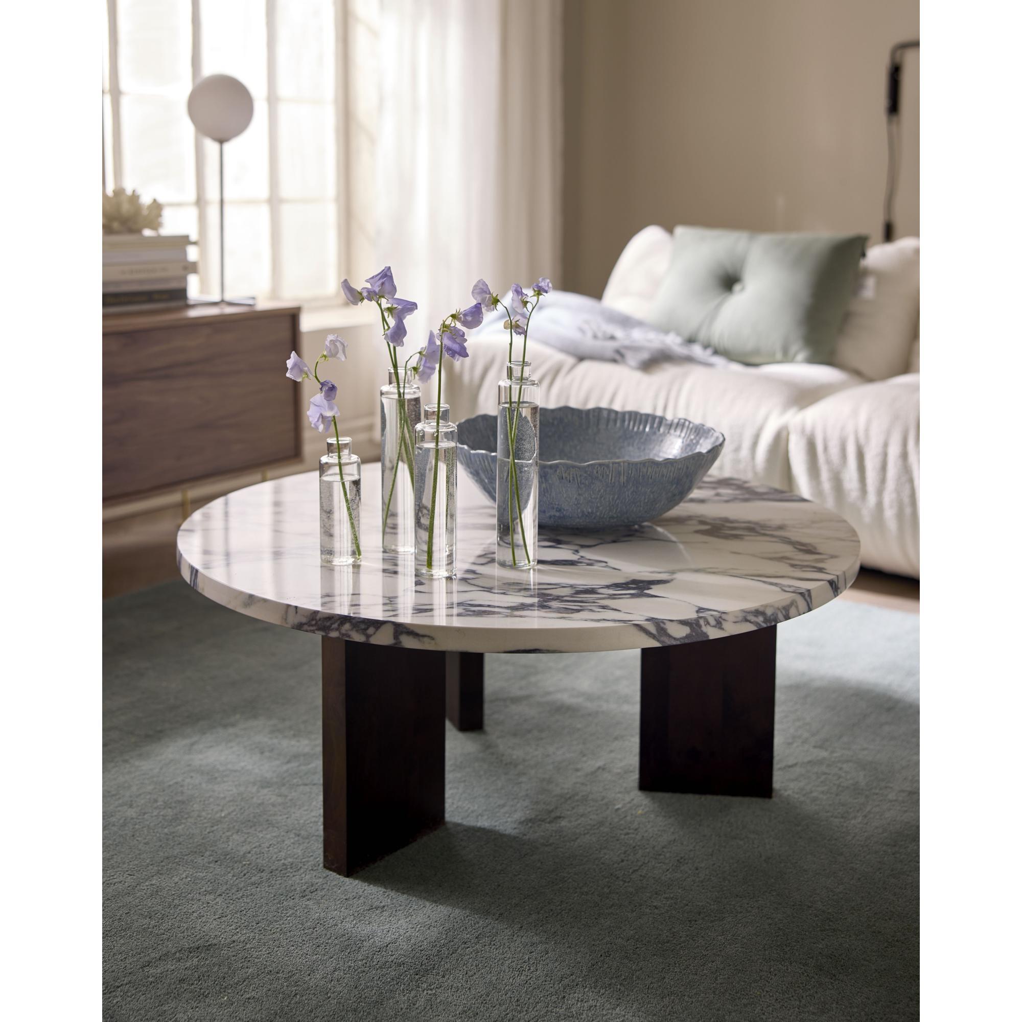 Questo tavolino della serie Eden crea un contrasto armonioso ed equilibrato tra il piano in pietra chiara e la base in legno scuro. Il risultato è un tavolino con carattere ed eleganza, che aggiunge un tocco sofisticato e moderno al soggiorno. La forma rotonda crea un flusso naturale negli interni e rende il tavolino adatto come elemento unificante, dove la qualità dei materiali si esalta al meglio.