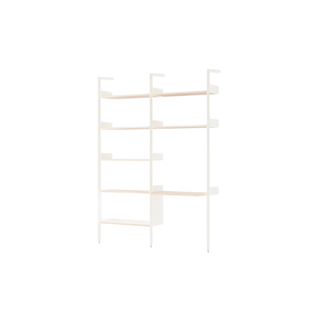 Rombe è un sistema di scaffalature flessibile e modulare progettato da Industrial Facility Limited per &Tradition. La serie è composta sia da ripiani singoli che da configurazioni assemblate, combinabili orizzontalmente e verticalmente in base alle esigenze dell'ambiente. La struttura grafica con telai metallici a forma di diamante crea un'espressione aperta e ariosa, mentre i ripiani aggiungono funzionalità e varietà di materiali. Rombe combina la precisione industriale con una leggerezza visiva che lo rende adatto sia ad ambienti domestici che professionali. Il design ben studiato consente la personalizzazione personale, mantenendo al contempo un'impressione generale elegante ed equilibrata.