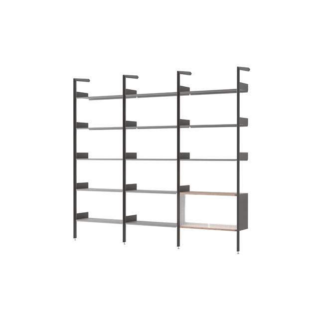 Rombe è un sistema di scaffalature flessibile e modulare progettato da Industrial Facility Limited per &Tradition. La serie è composta sia da ripiani singoli che da configurazioni assemblate, combinabili orizzontalmente e verticalmente in base alle esigenze dell'ambiente. La struttura grafica con telai metallici a forma di diamante crea un'espressione aperta e ariosa, mentre i ripiani aggiungono funzionalità e varietà di materiali. Rombe combina la precisione industriale con una leggerezza visiva che lo rende adatto sia ad ambienti domestici che professionali. Il design ben studiato consente la personalizzazione personale, mantenendo al contempo un'impressione generale elegante ed equilibrata.