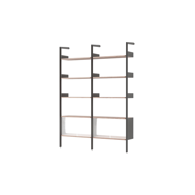 Rombe è un sistema di scaffalature flessibile e modulare progettato da Industrial Facility Limited per &Tradition. La serie è composta sia da ripiani singoli che da configurazioni assemblate, combinabili orizzontalmente e verticalmente in base alle esigenze dell'ambiente. La struttura grafica con telai metallici a forma di diamante crea un'espressione aperta e ariosa, mentre i ripiani aggiungono funzionalità e varietà di materiali. Rombe combina la precisione industriale con una leggerezza visiva che lo rende adatto sia ad ambienti domestici che professionali. Il design ben studiato consente la personalizzazione personale, mantenendo al contempo un'impressione generale elegante ed equilibrata.