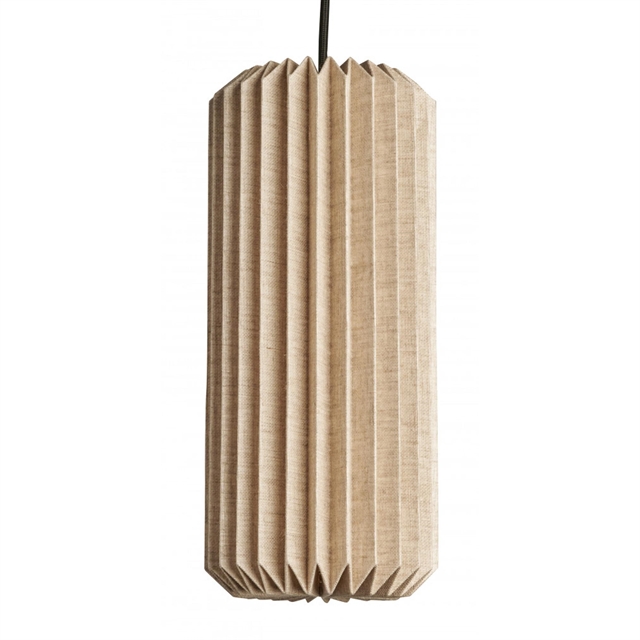 Alba Pendant Small è una lampada da soffitto elegante e raffinata, realizzata in tessuto di lino plissettato. È perfetta da sola sopra un tavolo da pranzo rotondo, in coppia sopra un tavolo rettangolare o come elemento indipendente, ovunque si desideri illuminare la stanza. La lampada è dotata di un cavo in tessuto nero e di una rosetta a soffitto che consente sia la sospensione a gancio che il montaggio diretto .